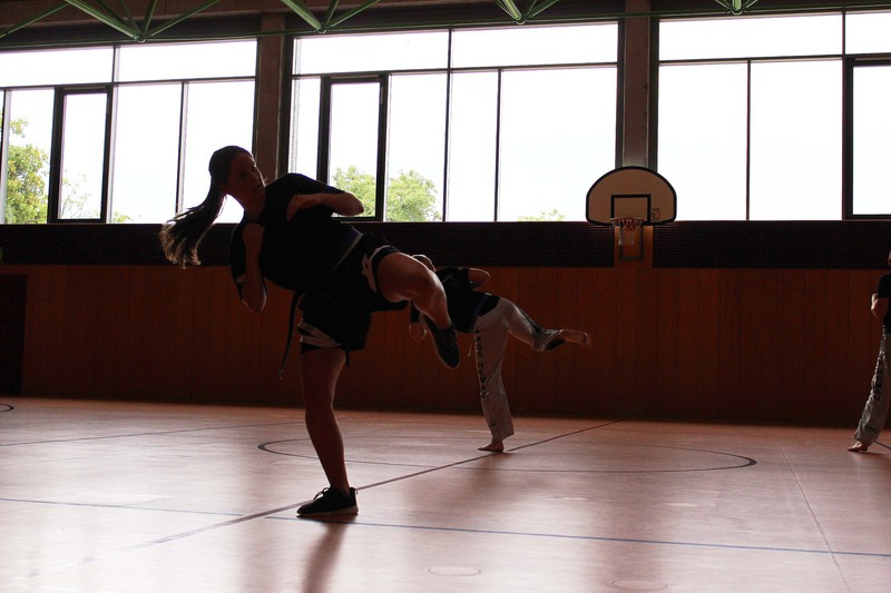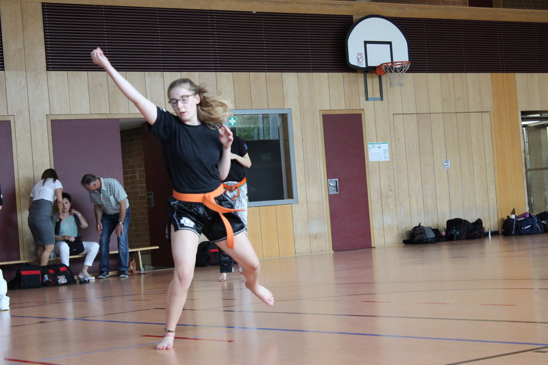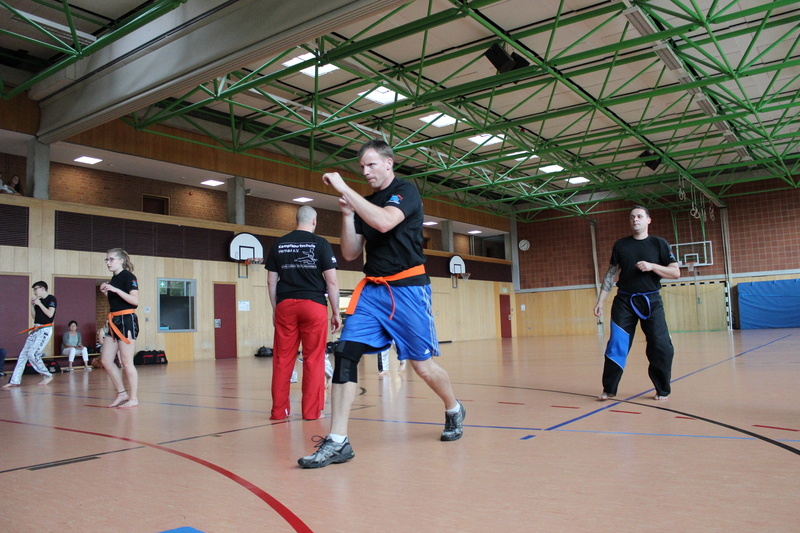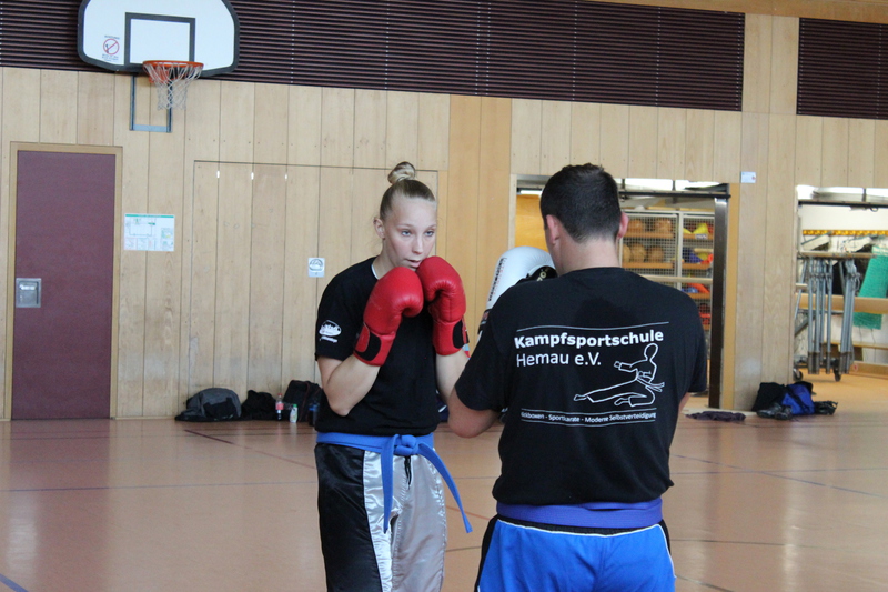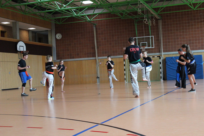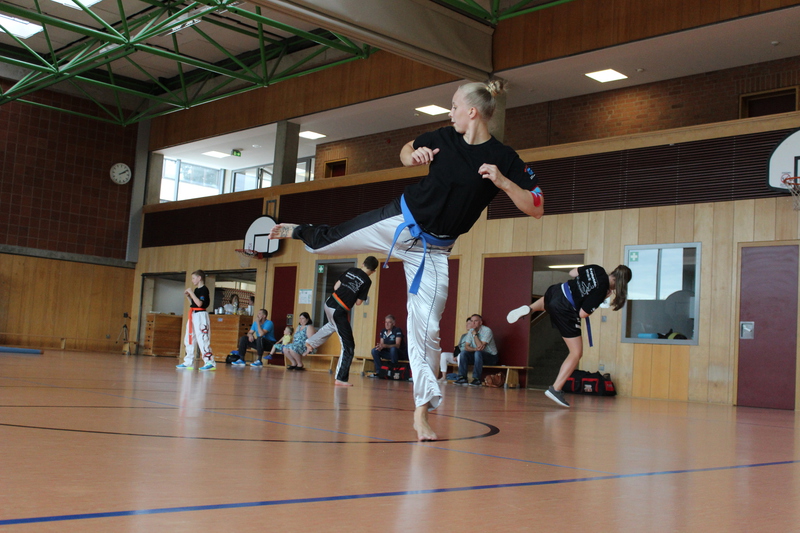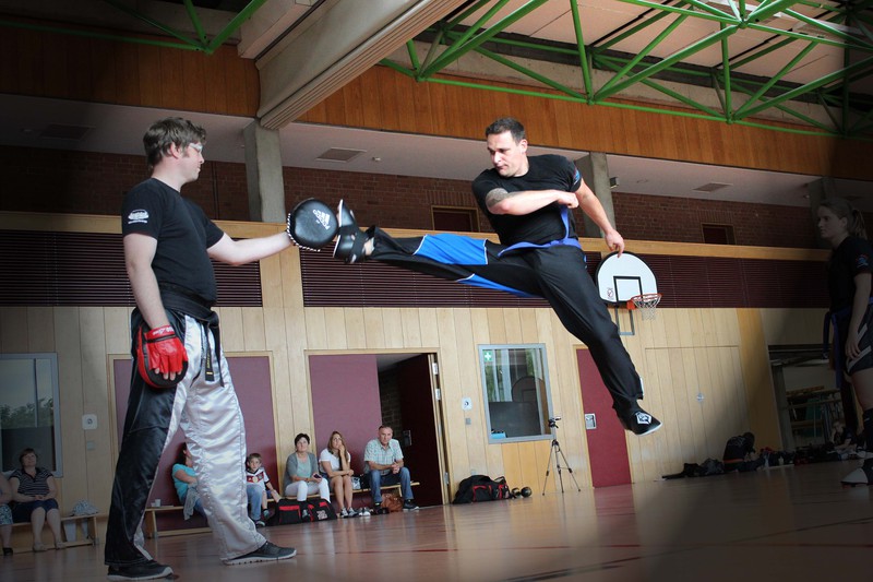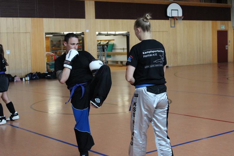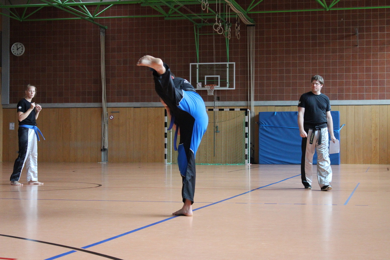 Weiterhin mussten die Prüflinge ihr Können im Modellsparring zusammen mit einem Partner und anschließend auch im Sparring zeigen. Auch hier war ein wichtiger Teil die Fallschule und
