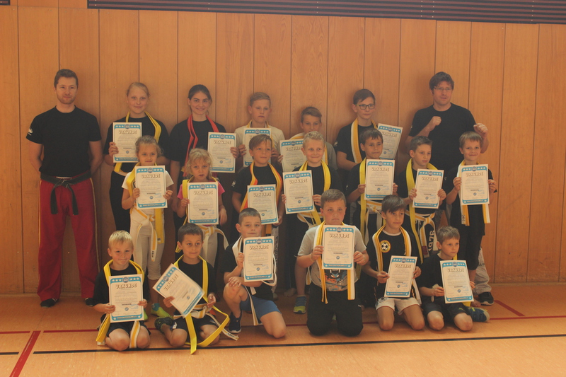 Im zweiten Teil der Prüfung legten19 Teilnehmer die Prüfungen vom Gelb bis zum Orangegurt ab.