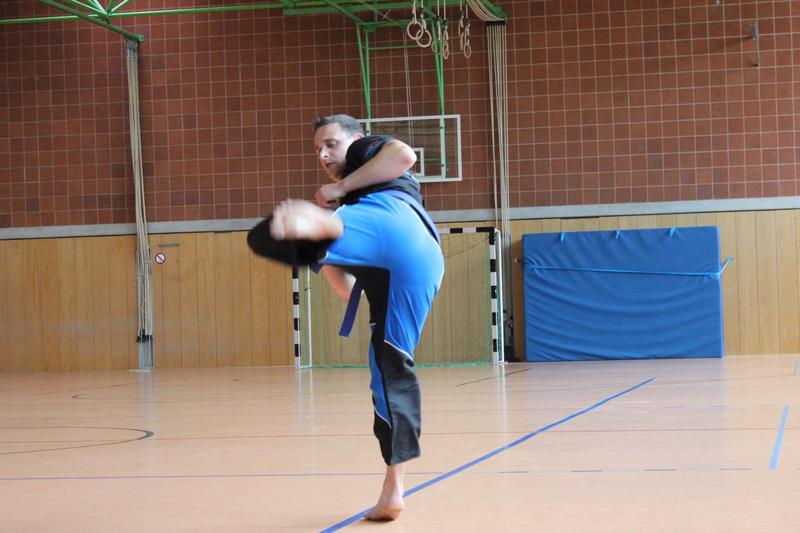 Schwerpunkt der Prüfung war hier die Sauberkeit der Technikausführung, Fallschule, Selbstverteidigung und Ausdauer.